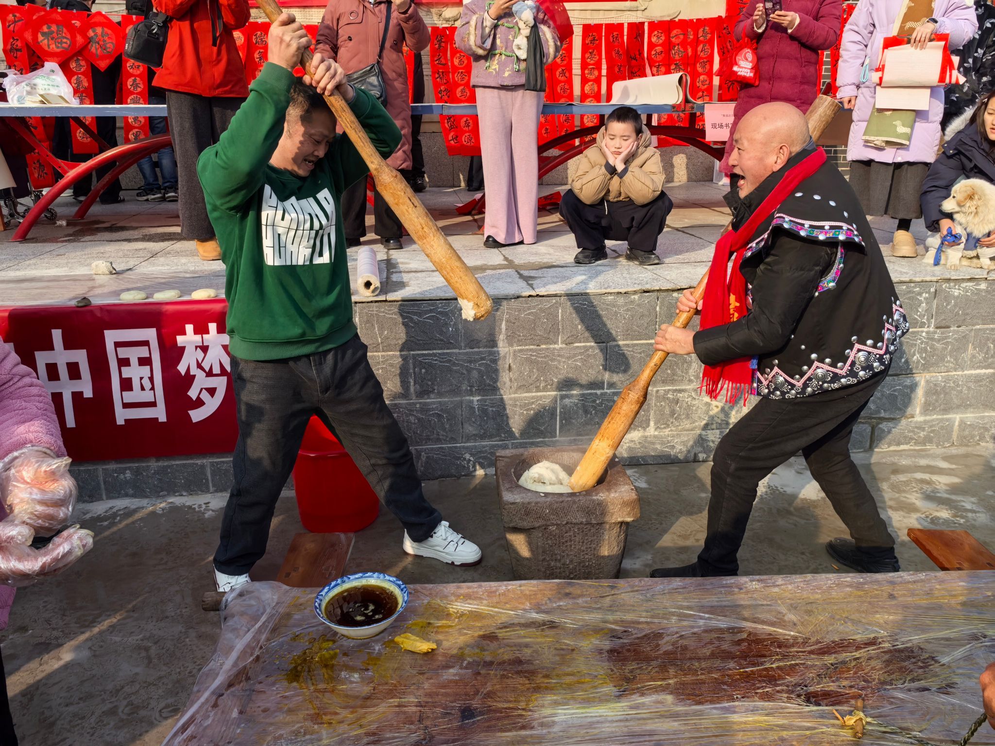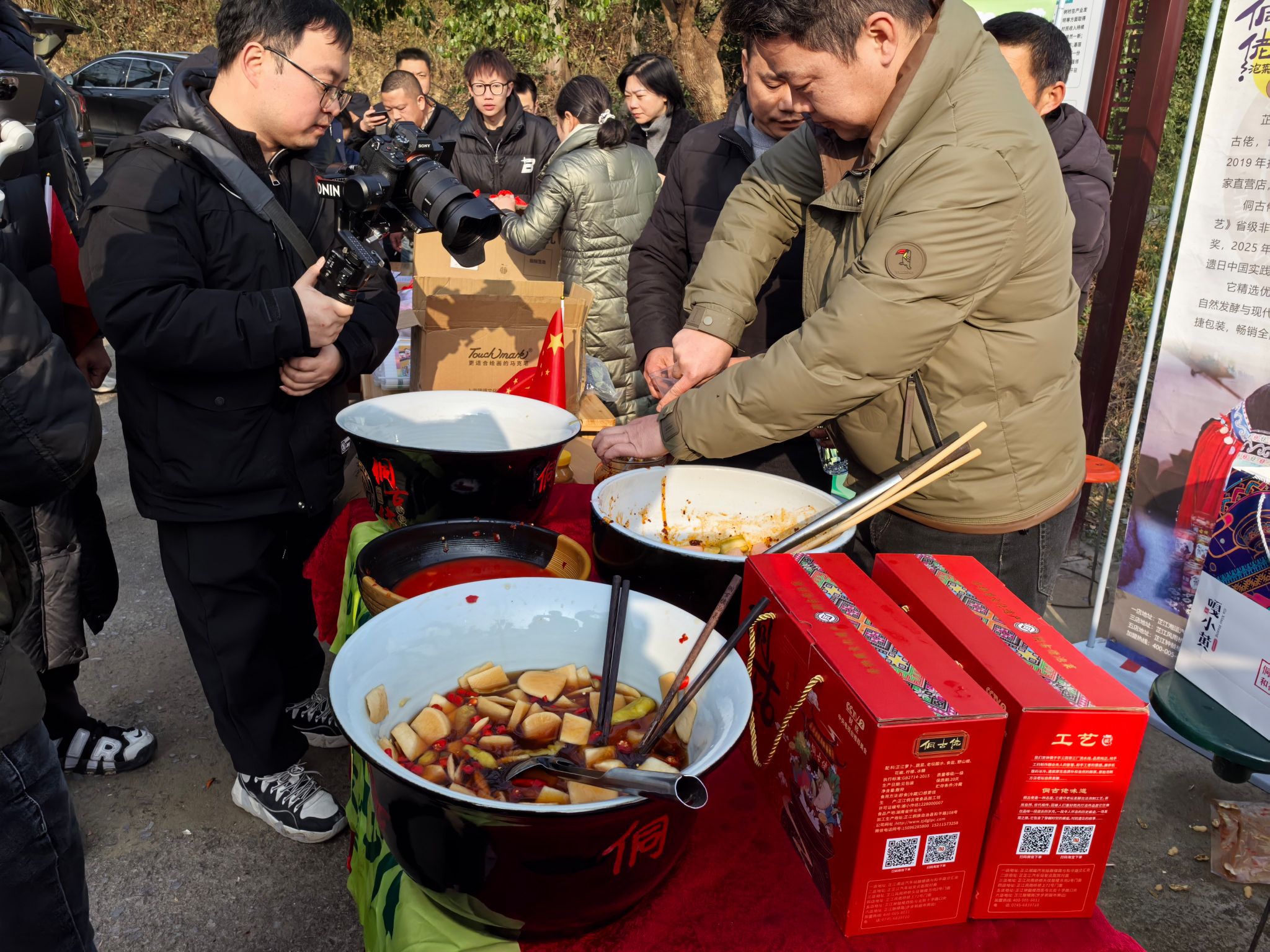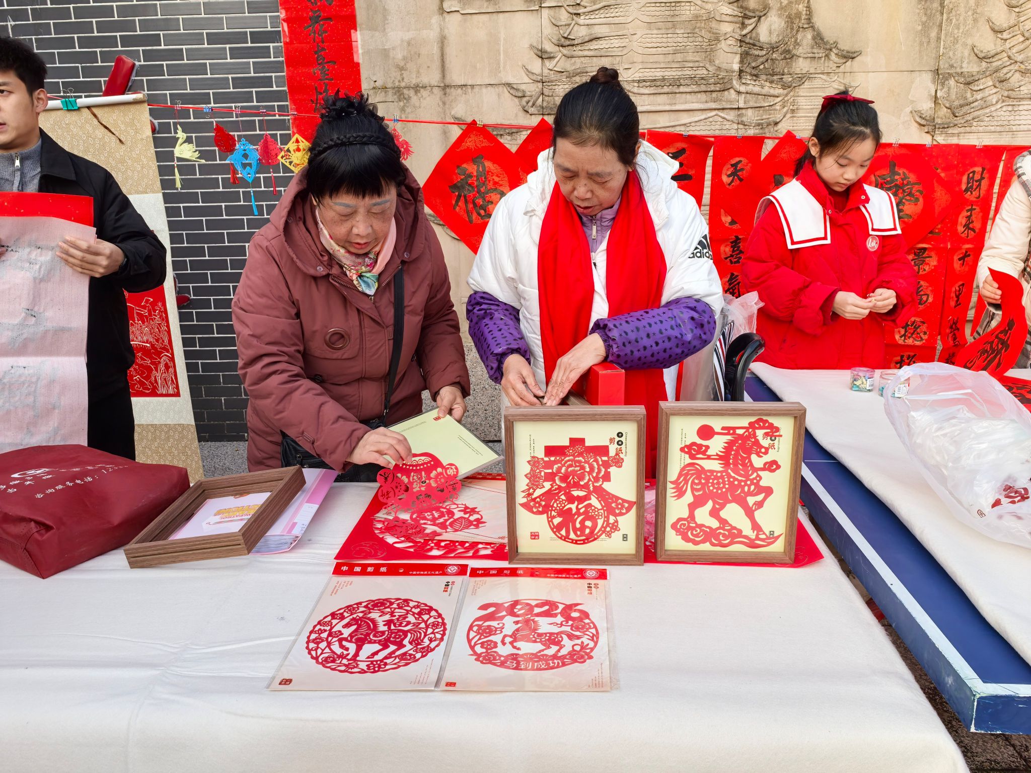 理论宣讲“声”入人心,非遗年俗体验区则是一片“热”气腾腾的景象。书法家们挥毫泼墨,一副副吉祥春联、一张张精巧福字窗花被村民欣然领走。石臼旁,打糍粑的号子铿锵有力;庖汤饭香气四溢,唤起人们对传统年味的记忆。特色美食区内,芷江酸萝卜、叶子粑等地方小吃供村民免费品尝,酸甜辣香,回味无穷。剪纸艺人巧手翻飞,栩栩如生的窗花顷刻展现。这些传统技艺不仅承载文化记忆,更在新时代焕发新生。