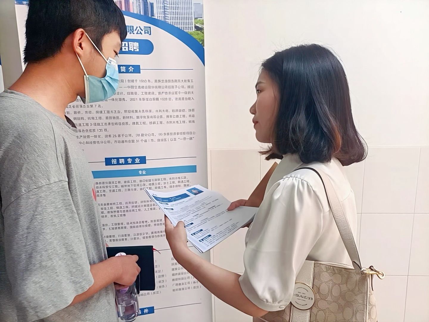 李敏(右)指导学生修改简历