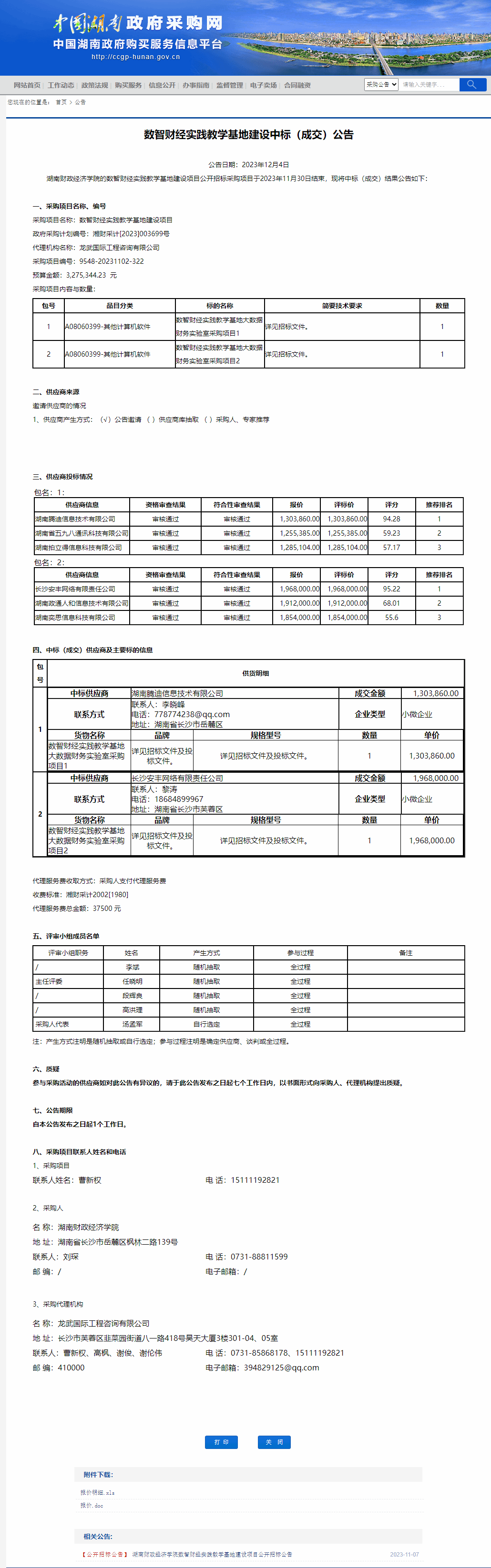 湖南省政府采购网: WilliamHill官方网站数智财经实践教学基地建设项目中标(成交)公告