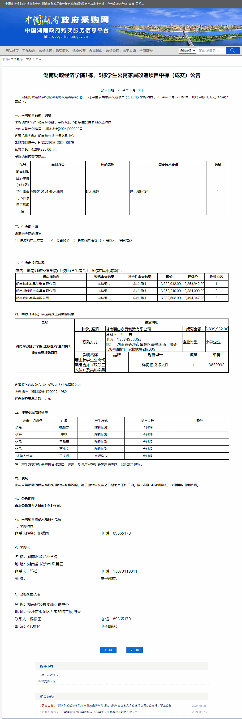 湖南省政府采购网:WilliamHill官方网站1栋、5栋学生公寓家具改造项目中标(成交)公告