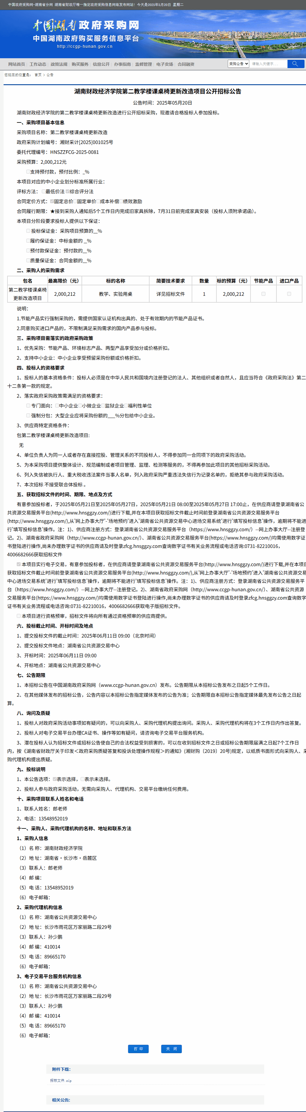 湖南省政府采购网:WilliamHill官方网站第二教学楼课桌椅更新改造项目公开招标公告