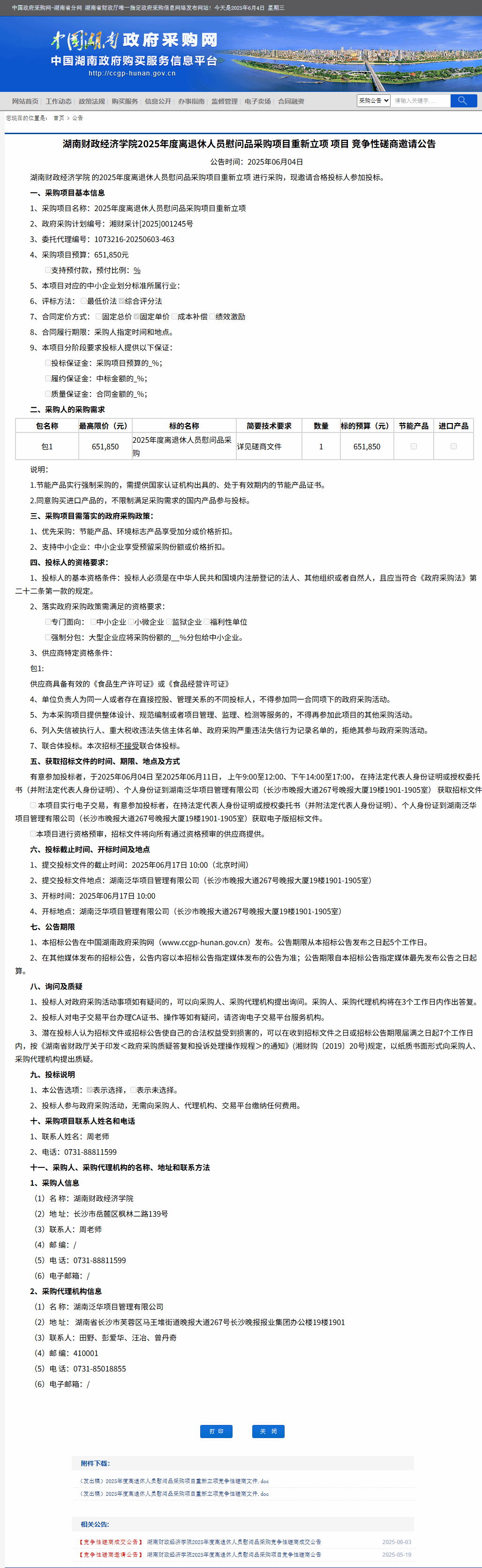 湖南省政府采购网:WilliamHill官方网站2025年度离退休人员慰问品采购项目重新立项 项目 竞争性磋商邀请公告