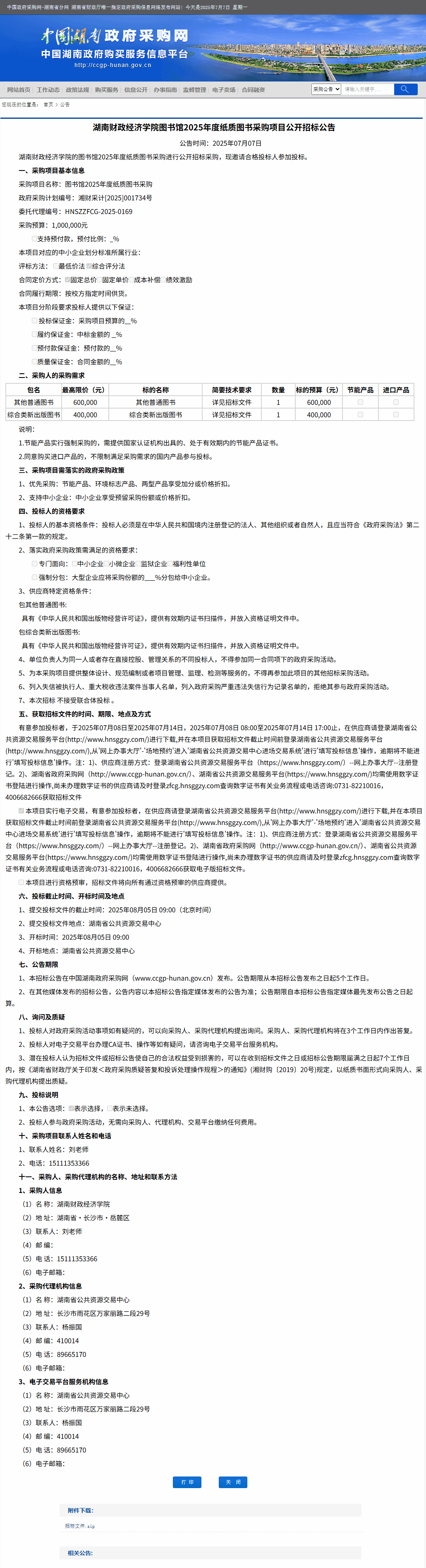 湖南省政府采购网:WilliamHill官方网站图书馆2025年度纸质图书采购项目公开招标公告