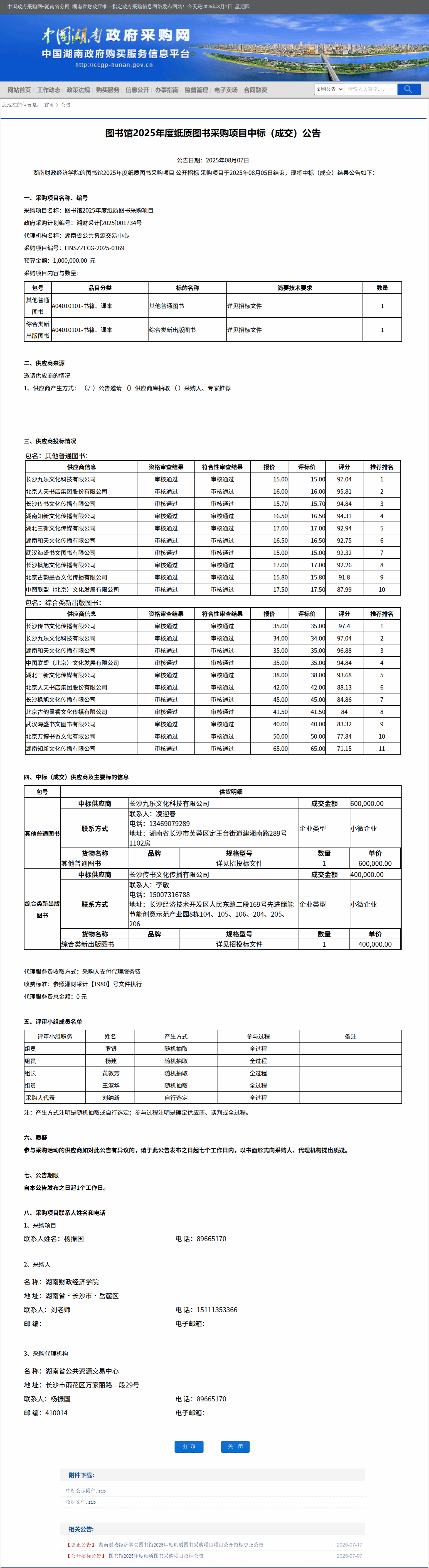 湖南省政府采购网:WilliamHill官方网站图书馆2025年度纸质图书采购项目中标(成交)公告