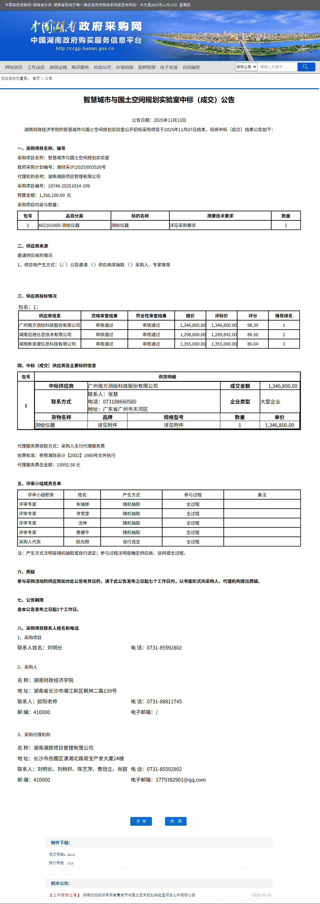 湖南省政府采购网:WilliamHill官方网站智慧城市与国土空间规划实验室中标(成交)公告