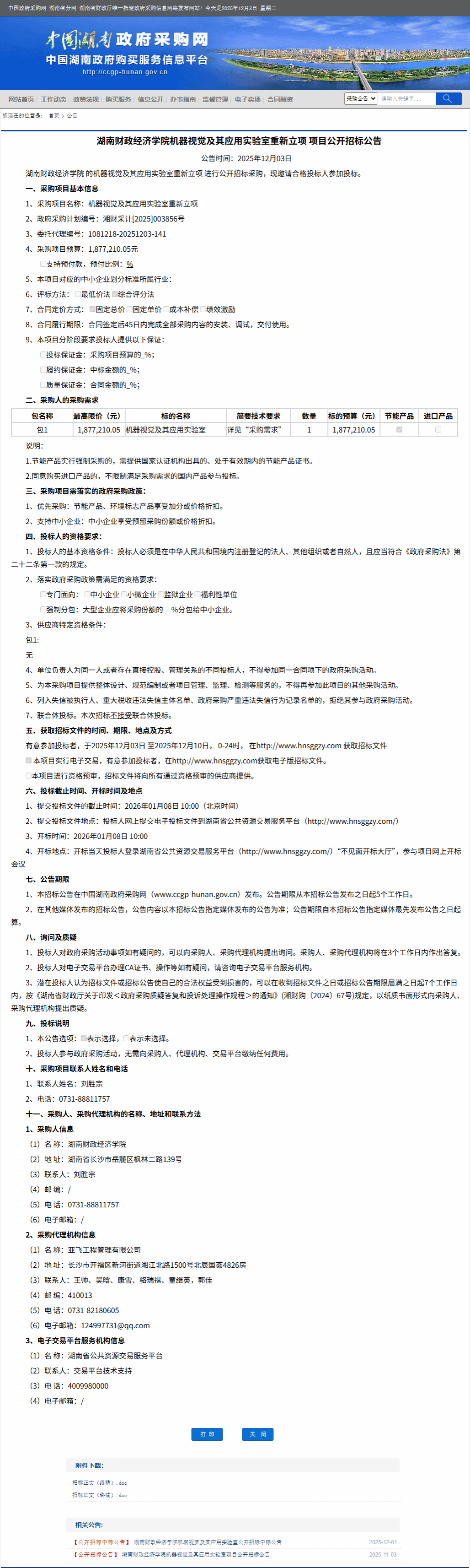 湖南省政府采购网:WilliamHill官方网站机器视觉及其应用实验室重新立项项目公开招标公告