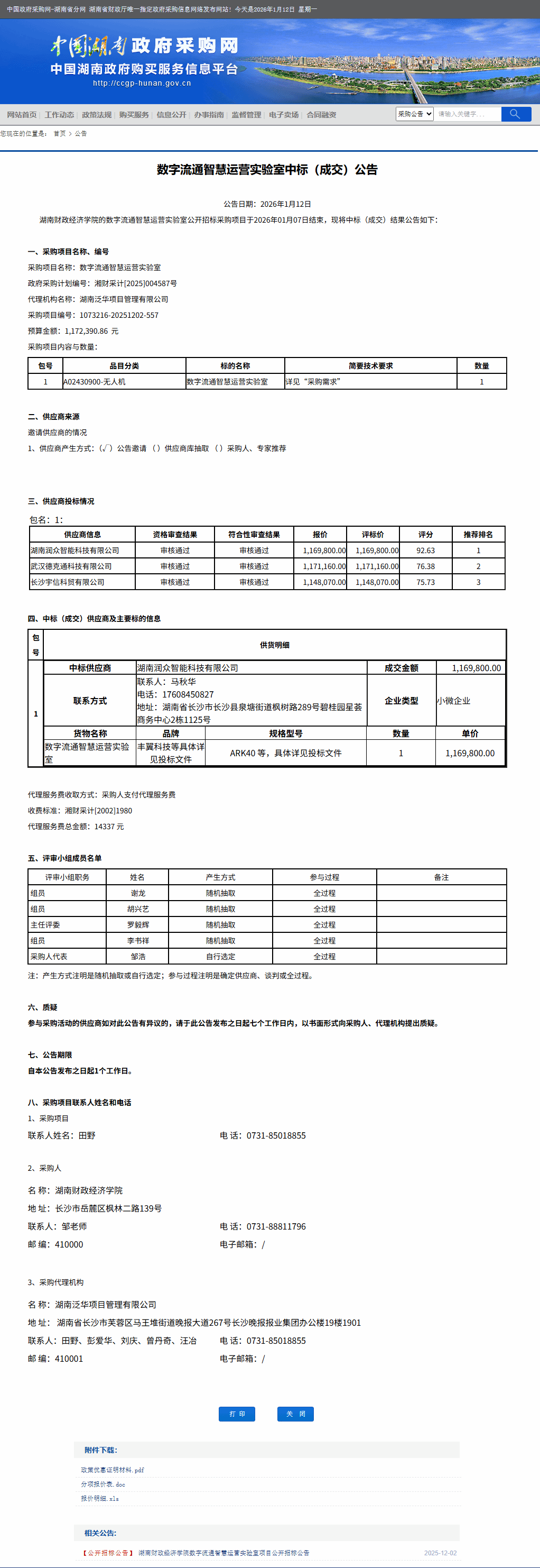 湖南省政府采购网:WilliamHill官方网站数字流通智慧运营实验室中标(成交)公告