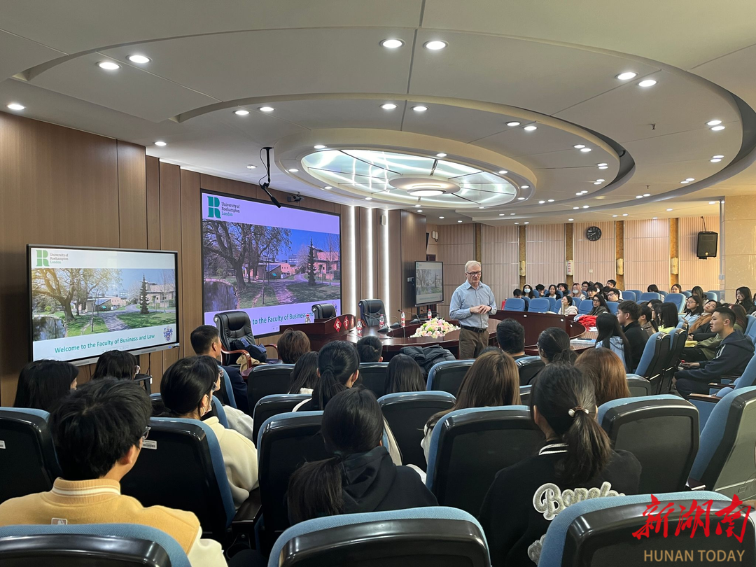 会后,Stephen O’Regan作专题讲座,向湖南财院百余名师生详细介绍了英国罗汉普顿大学的教学设施、学科优势、学业情况、校园环境等,并就学生们提出的关于罗汉普顿大学学位授予、学费和消费水平、交通情况等问题进行了解答。