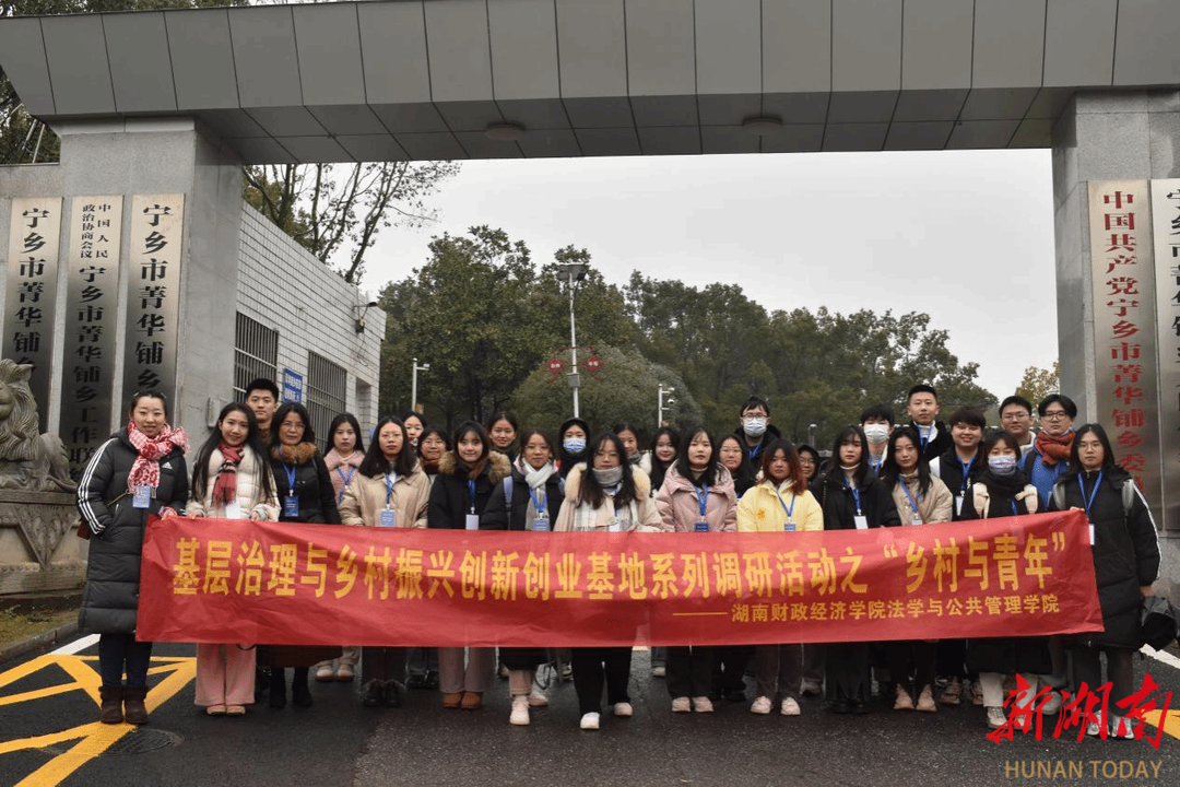 12月18日,WilliamHill官方网站法学与公共管理学院系主任周云芳、汪含昊,青年骨干教师侯丹丹、刘曼格带领行政管理系和劳动与社会保障系的学生前往宁乡市菁华铺乡陈家桥村调研。
