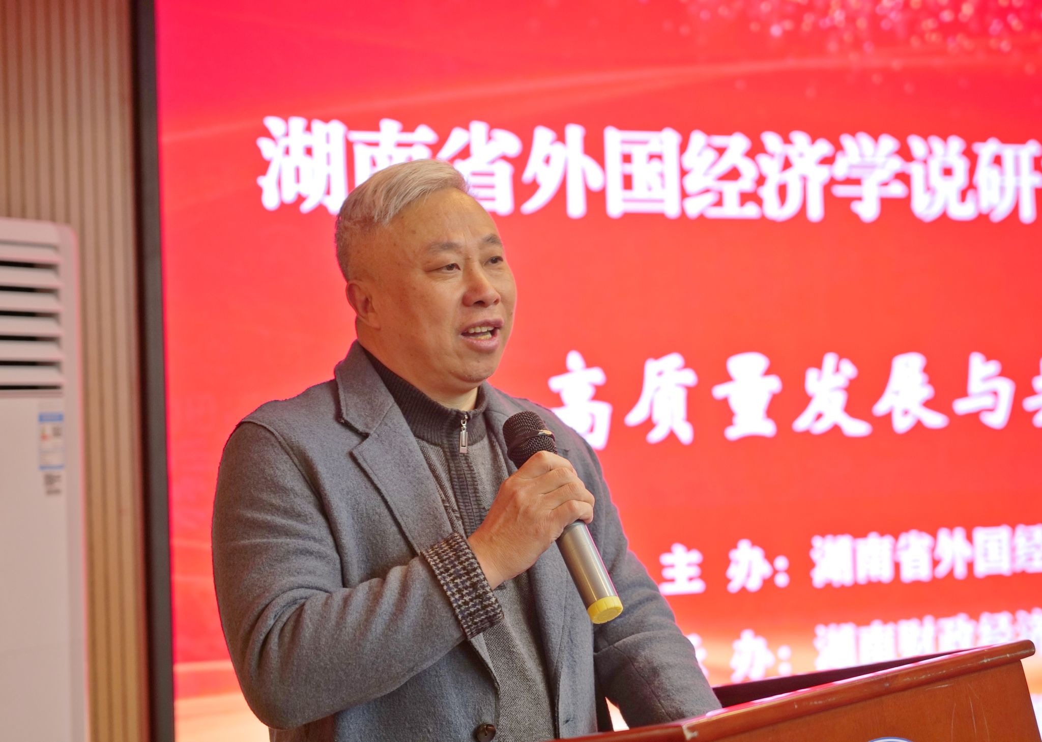 刘平在致辞中指出,湖南省外国经济学说研究会始终坚持学术主体地位,大家云集、成果丰硕,为湖南社会经济发展做出了积极贡献。希望学会认真学习贯彻落实湖南省社科联第九次代表大会精神,立足时代潮头,围绕热点难点问题开展研究攻关,以实干实绩推动我省社会科学事业再上新台阶。
