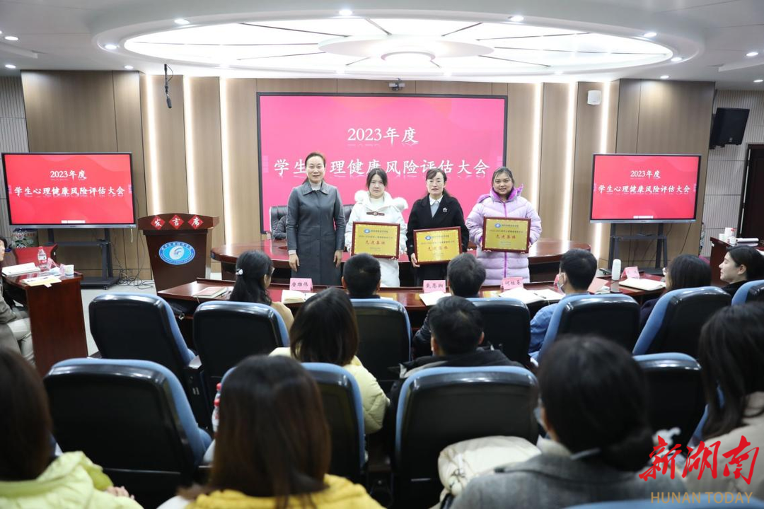 会议现场对2023年度心理健康教育工作先进集体和先进个人进行表彰和颁奖。获奖代表分享了工作经验。