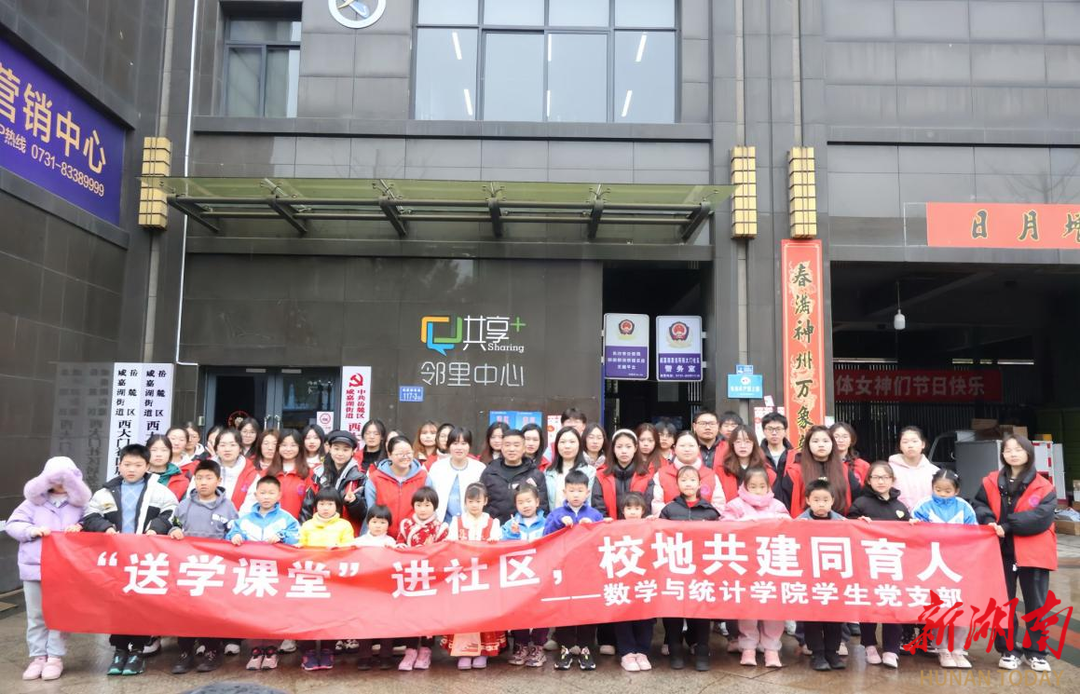3月9日,WilliamHill官方网站数学与统计学院联合湖南湘江新区咸嘉湖街道西大门社区开展“送学课堂”活动。西大门社区党总支书记冯志峰、数学与统计学院党总支副书记杨艳出席。