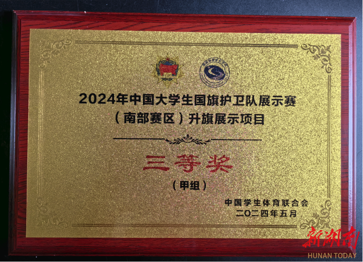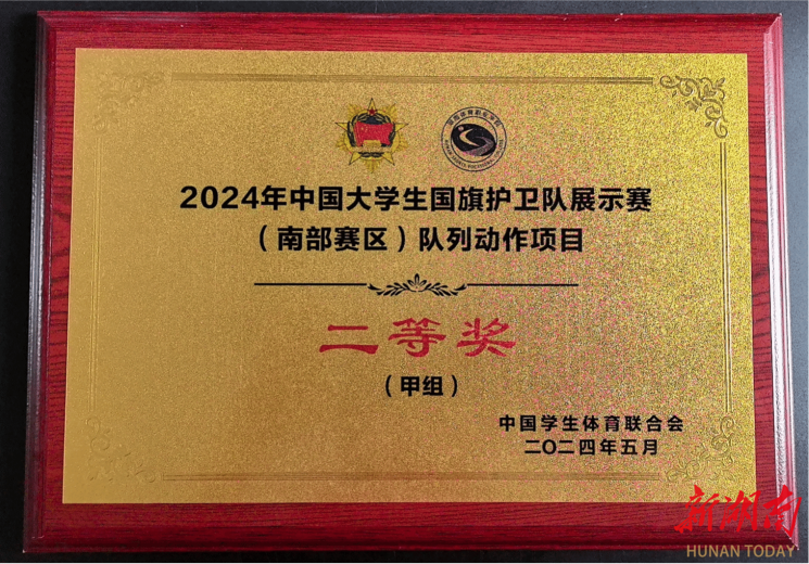 本次大赛由中国学生体育联合会主办,湖南体育职业学院承办,共有来自南部六省的24所高校代表队参赛。比赛分为甲组(本科组)、乙组(高职高专组),开展升旗展示、队列动作两个项目竞赛,赛期为2天,期间还开展了红色研学等活动。(熊弋帅 尹帅杰 蒋彦婕)