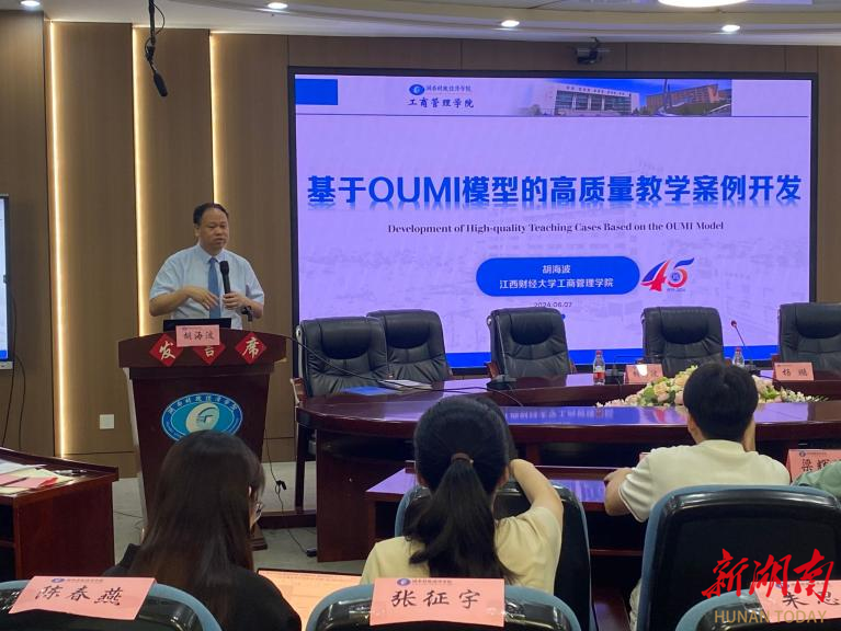 6月7日下午,WilliamHill官方网站工商管理学院在主校区办公楼五楼视频会议室举办第十三期商学论坛。江西财经大学工商管理学院院长胡海波以“基于OUMI模型的高质量教学案例开发”为主题作辅导报告。论坛由工商管理学院院长杨鹏主持,副院长梁辉煌,科研办、学科办主任,专业教师代表及学生代表参加。