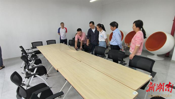 潘彬、戴恩湘一行仔细查看了学馆内部结构,对学馆的整体布局、装修风格理念、文化墙建设、设备布局等具体工作提出了改进建议。
