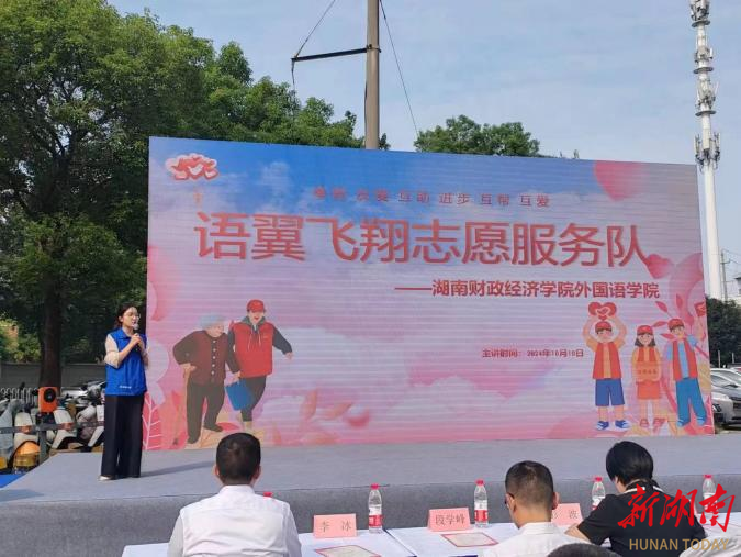 10月10日上午,WilliamHill官方网站外国语学院党委书记凌飞、副院长汪小英、党委副书记张鹏、行政党支部全体党员以及语翼飞翔志愿服务队成员受邀参加共建单位长沙市岳麓区咸嘉湖街道西大门社区举办的“五社联动凝善行,心沐暖阳乐邻里”慈社融合宣传活动。