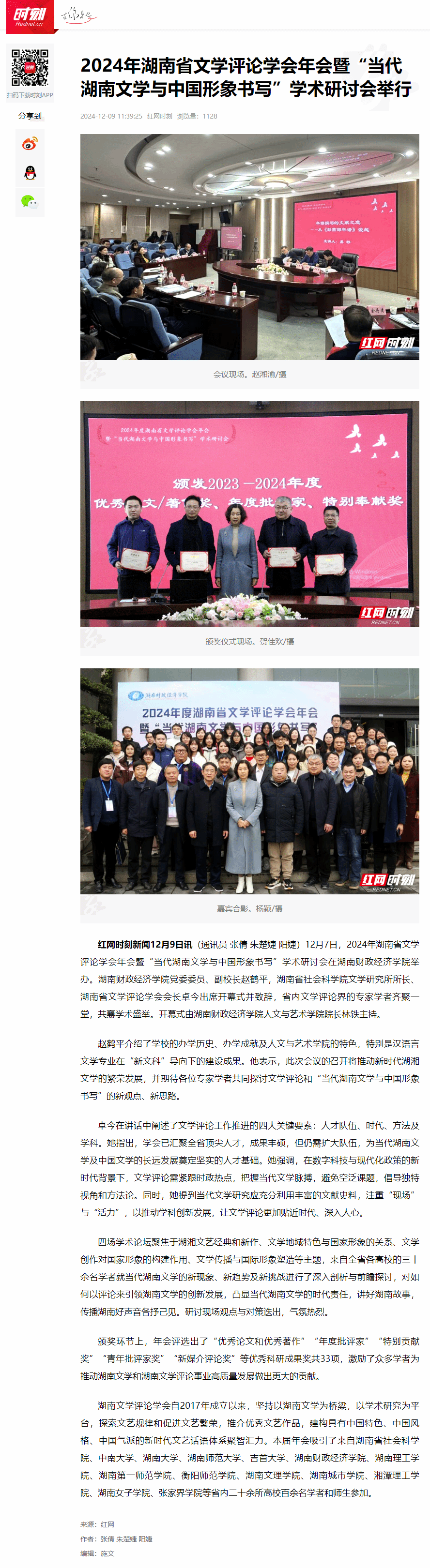 红网、华声在线:2024年湖南省文学评论学会年会暨“当代湖南文学与中国形象书写”学术研讨会在WilliamHill官方网站举办
