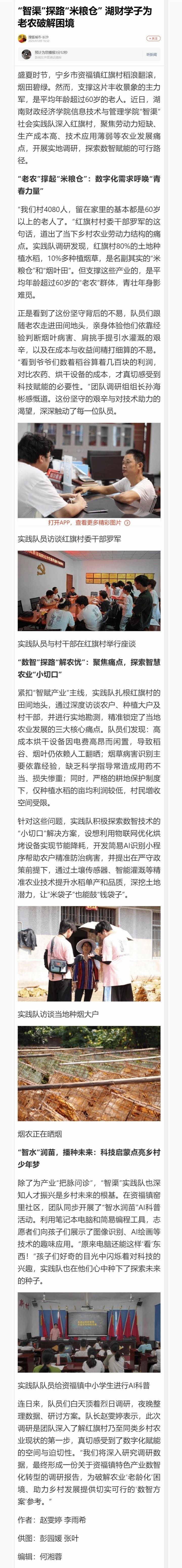 搜狐新闻、新湖南:“智渠”探路“米粮仓” 湖财学子为老农破解困境