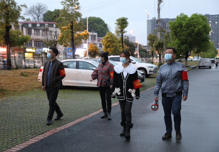 教职工抗疫先锋在巡查校园 张珍妮/摄