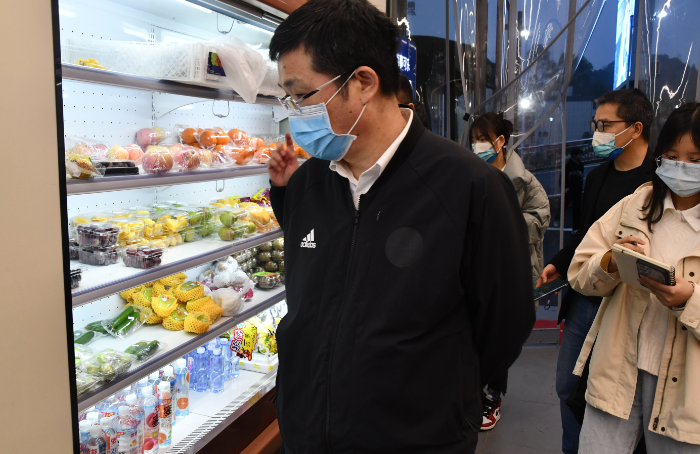 刘长庚先后来到雷锋校区公寓、食堂、教学楼、超市等地视察。刘长庚指出,当前疫情形势严峻,全校师生要高度重视疫情防控工作,确保疫情防控各项措施落实到位,统筹谋划、上下联动,确保线上教学有序推进,全力做好疫情期间学生心理健康教育与咨询工作,及时听取学生诉求,妥善解决学生困难,加强疫情防控期间后勤服务保障,深入进行安全隐患排查。