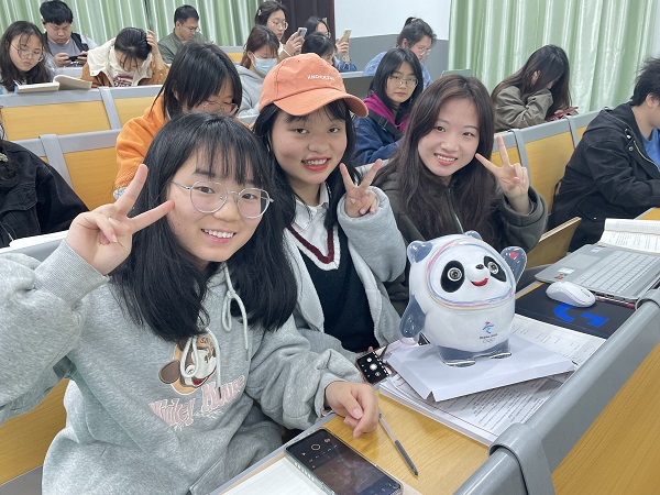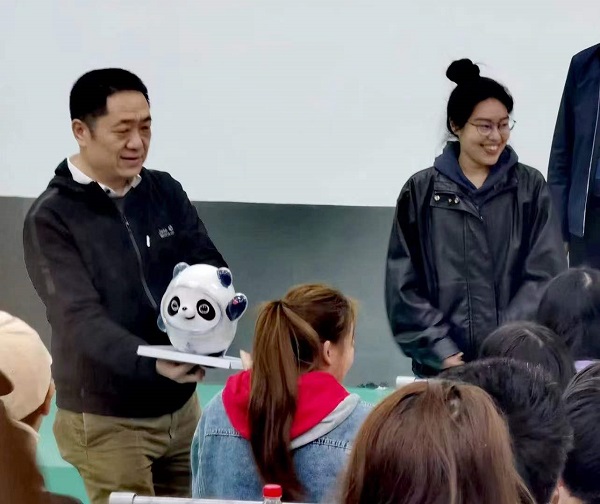 在至诚楼,肖湘愚观看了新生合唱团排练,高度肯定了他们的训练成果,鼓励他们刻苦训练、坚持不懈,不断提升艺术素养。肖湘愚还来到24小时自习室,了解2021级旅游管理1班、文化产业管理1班学生的晚自习情况,并给他们赠送了冰墩墩,鼓励他们学习运动员拼搏奋进、不断突破自我的精神,努力学习,天天向上。