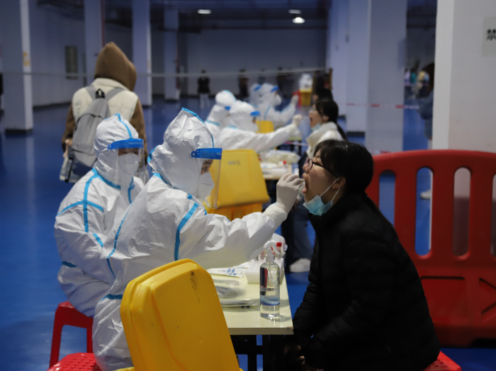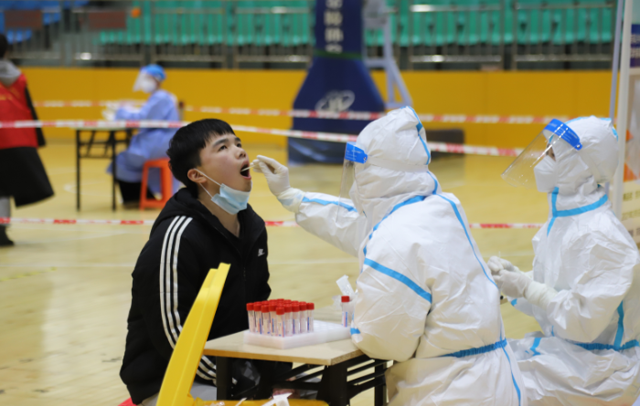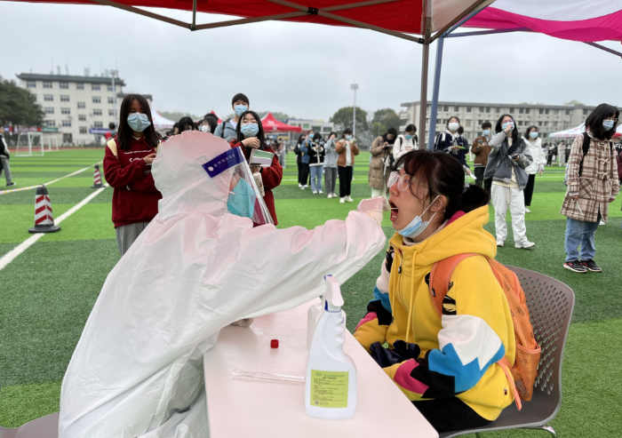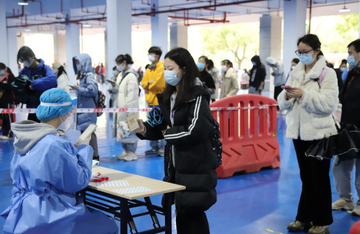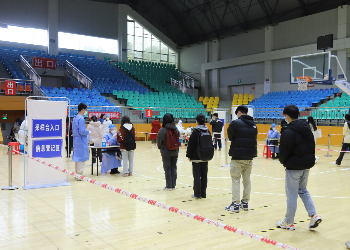 在总结第一轮核酸采集检测经验的基础上,学校在校本部一食堂阳光房、体育馆和雷锋校区田径场设置5个采样点20个检测通道,规划人员进出路径、画一米线、消毒消杀,分时段、分学院、分类别组织教职工、在校生、食堂员工、校内商户和职工家属参加检测,同时对持黄码隔离人群安排医护人员上门采样,做到“应测尽测、应检尽检”。采集现场还设置了为老年群体、行动不便人士等特殊群体开启的“绿色通道”,让他们优先进行核酸检测。