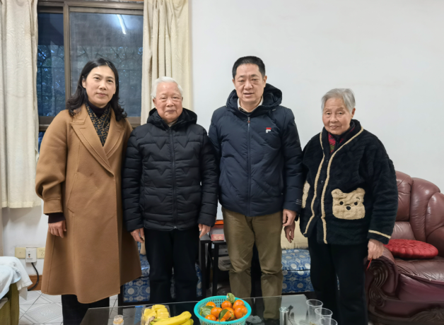 校党委书记肖湘愚(右二)走访慰问老党员易桂初(左二)、陈克晖(右一) 黄宣桦/摄