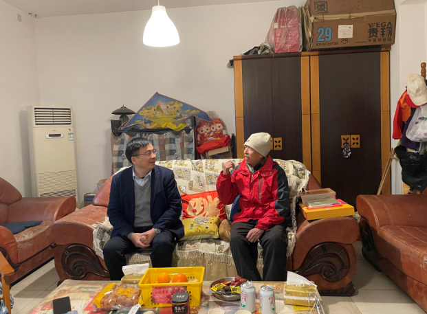 副校长郭国强(左)走访慰问老党员杨铁森(右) 孙颂峰/摄