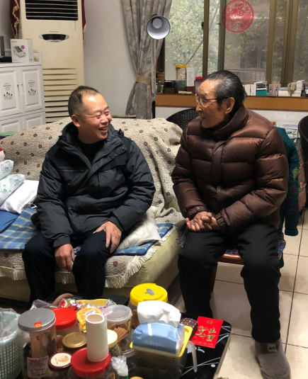 副校长刘钟理(右)走访慰问老干部颜学根(左) 孟晓辉/摄
