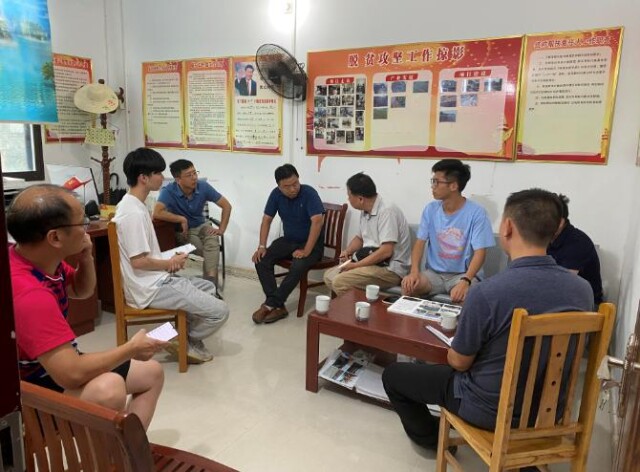 实践团队与村支书熊初开、学校驻村工作队队员座谈交流