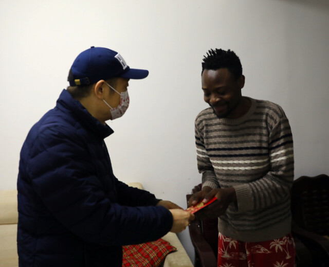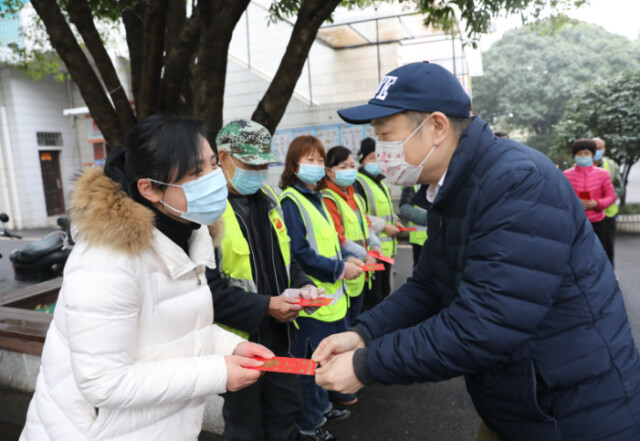 给宿舍管理员和保洁人员送慰问金