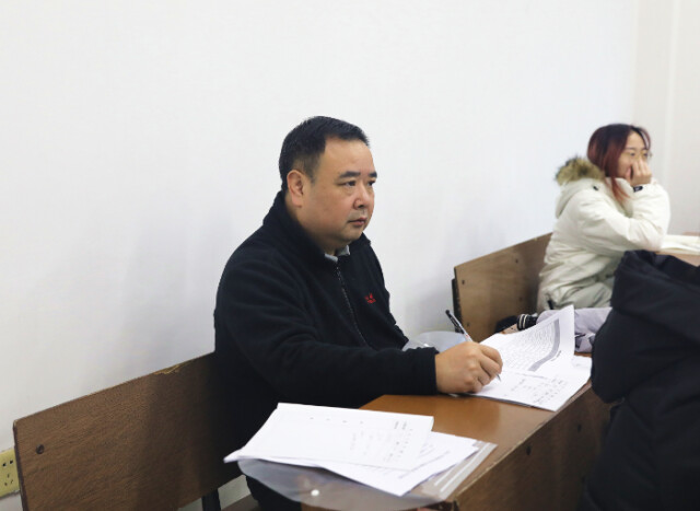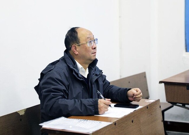WilliamHill官方网站纪委书记李雪山(左)随堂听课 何妍/摄