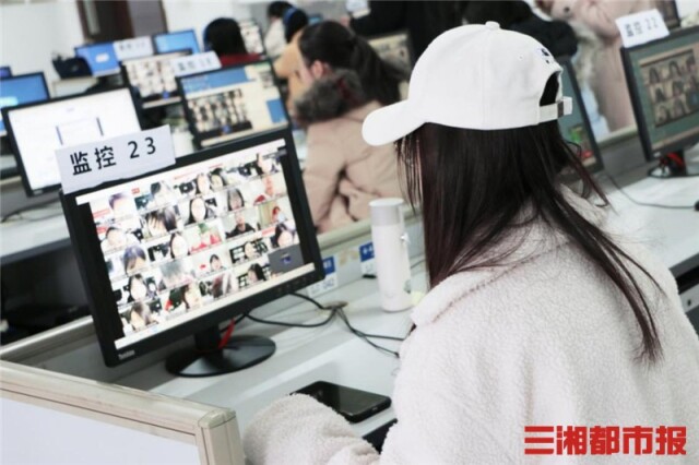 12月27日,304名选手齐聚长沙理工大学展开较量。其实,此次参加现场决赛的选手,是从数千名在“云端”较量过的选手中脱颖而出的。“12月5日,全省进行了线上资格赛。” 技术平台方负责人李湖告诉记者,比赛时,参赛选手必须在摄像头前独立参赛,共设有80余名监考官监考,选手均通过账号在“专一网”云平台参赛。