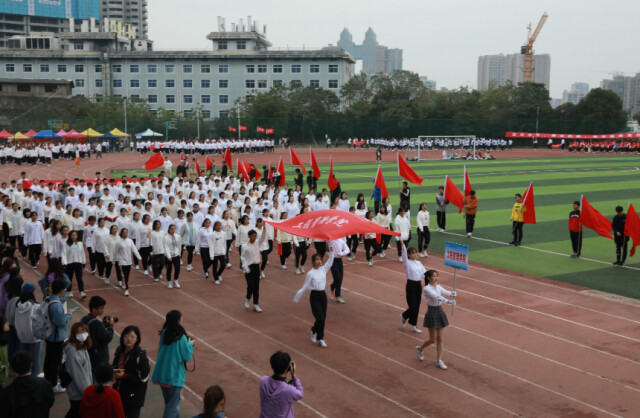 8时30分,开幕式开始。在学校国旗护卫队的引领下,裁判员代表队、各二级学院代表队以及教职工代表队迈着整齐的步伐,士气高昂地通过主席台。铿锵有力的步伐伴随着嘹亮的口号,每一个方队都以自己独特的方式展示了新时代财院师生饱满的精神和昂扬的斗志。