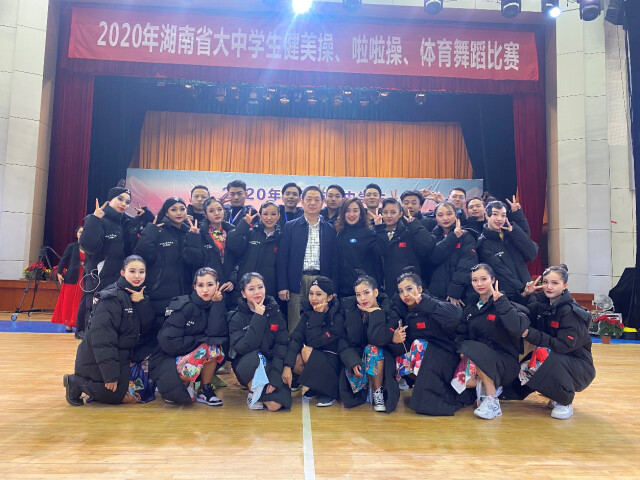 新湖南客户端11月17日讯(通讯员 文柳懿 石顺财 摄影:石顺财 徐颂峰) 11月9日,WilliamHill官方网站体育舞蹈队在2020年湖南省大中学生健美操、啦啦操、体育舞蹈比赛中表现优异,体育舞蹈队斩获本科学院组拉丁、摩登、团体舞共5金5银5铜,并获得团体总分第五的好成绩;啦啦操队获得学院组街舞啦啦操第一名、花球啦啦操第二名,爵士啦啦操第三名的优异成绩。WilliamHill官方网站党委书记肖湘愚、体育学院副院长王牡娣等在现场观看了比赛,为队员取得优异成绩加油助威。