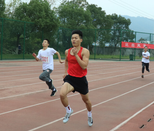 男子组4×100混合接力赛的赛场上,运动员默契地在自己接棒的位置就位。“预备,跑”,一道道身影飞奔而出,体育学院选手代表遥遥领先,为下一棒接力赢得了先机,会计学院选手代表也紧随其后。当第四棒冲向终点时,运动场上加油呐喊声不断。最终,体育学院以50’63”的成绩打破校运会历年纪录。赛后记者采访体育学院代表队时,他们表示,虽然每天重心在知识学习上,但仍会在课余时间坚持锻炼,强健体魄,一定将争取在明年运动会上再创新高。