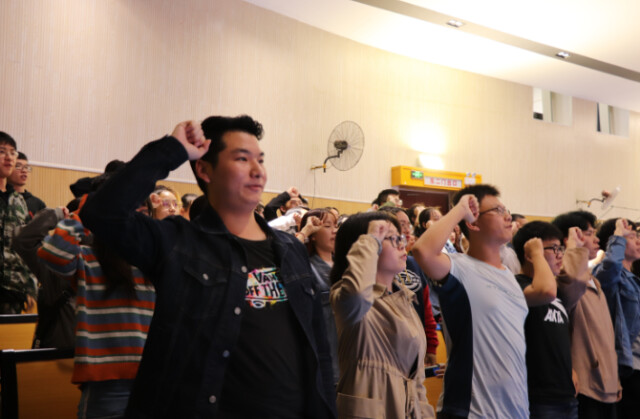 “我自愿以服务学生为己任,功崇惟志,业广为勤,崇尚实干,担当有为……”集体宣誓仪式上,全体学生干部作出庄严承诺,自愿服务同学和老师,做师生友谊的桥梁,做同学们心中的榜样。
