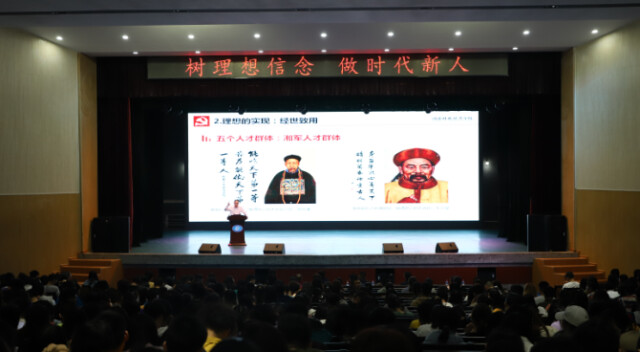 授课过程中,肖湘愚从“当代大学生如何树立远大理想”这一引发大家共鸣的话题谈起,通过讲述近代湖南仁人志士挽救国家和民族的危亡的故事,进而阐明青年最重要的志向应该同祖国和人民联系在一起,要心怀“以天下为己任”的历史责任感与使命感。