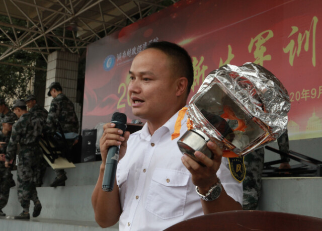 消防培训教官结合近年来高校的典型火灾案例,以案说法,讲述了火灾多发的原因及危害性、火情初期的处置与火场逃生的基本原则,并以身示范,告知同学们如何正确佩带防毒面具、如何正确使用灭火器具扑灭初期火灾。
