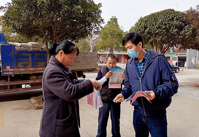 “各位村民注意了,多居家,少串门,不得扎堆聊天,不要走亲访友……”流动宣传车的“大喇叭”响彻了全村,村村响广播展开“全覆盖式”宣传,每天拿着宣传资料走家串户是他的工作常态。发放宣传资料看起来是件很容易的事,可是真正想要发挥效果却并不容易。“村里老人居多,文化水平偏低,很多人根本就看不懂,也不知道疫情有多么严重”。这就需要在发放资料的同时去和他们耐心解释,可很多老人家根本听不懂普通话,解释起来十分费劲。为此,他便提出充分发挥青年团员的作用,让他们理解之后再去和左邻右舍的长辈们解释,更接地气,效果明显。