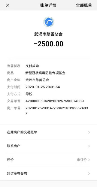 湖南中医药大学校学生会资助部发动学生会内部同学开展捐款活动,共计捐赠2500元,通过微信公众号直接捐赠至武汉市慈善总会官方账号。