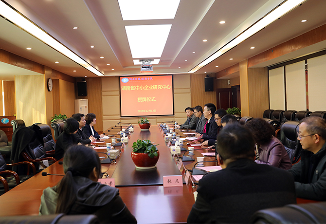 湖南日报·新湖南客户端12月20日讯(通讯员 刘港 杨鹏 摄影 汪洋)12月13日,湖南财院与湖南省中小企业公共服务平台共建“湖南省中小企业研究中心”授牌仪式在办公楼715会议室举行。湖南财院常务副校长刘寒波、湖南省中小企业公共服务平台总监邹齐代表双方为“湖南省中小企业研究中心”授牌,工商管理学院院长刘铁明接牌。活动由副校长王焕清主持。