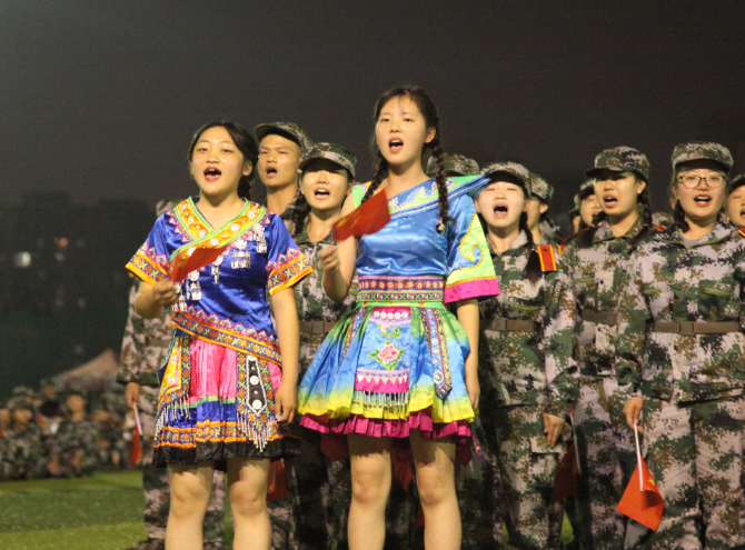 湖南日报·新湖南客户端10月17日讯(通讯员 文茜红 唐汇慧 严冬庆 摄影 唐汇慧 文茜红)10月2日晚,皓月皎洁,星光闪耀,校田径场秋风习习,歌声嘹亮,现场掌声一浪高过一浪。湖南财院2019级新生军训歌咏比赛在此火热举行,千余名学子用激情澎湃的歌声向伟大祖国深情告白,以斗志昂扬的精神风貌共同祝福新中国成立70周年。