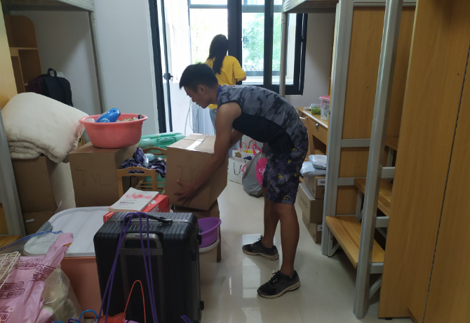 大清早,学生们便开始了搬寝工作,宿舍楼前,放满了鼓囊囊的编织袋和行李箱,学生志愿者也早早等候在那里,帮忙将打包好的行李源源不断地输送往新分配的寝室。从学校北方位的公寓楼1栋到学校西门的新公寓楼17栋,楼梯上上下下都有学生志愿者的身影,天气的炎热并没有阻挡学生志愿者热情服务的心,他们帮搬离同学拎箱子、拿杂物,从始至终都展露着最真挚的笑容,用实际行动践行互助、友爱、奉献的精神,让受帮助的同学感觉到了家的温暖。许多男生也体现了绅士风度,帮助女生搬运物品,大家合理分工,互帮互助。