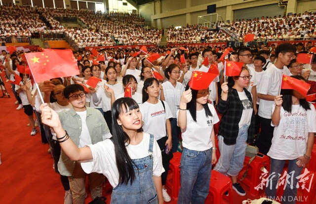 9月22日,WilliamHill官方网站,师生一起歌唱《我和我的祖国》。当天,该院2019级新生开学典礼上,3700余名新生和老师一起升国旗、合唱爱国歌曲,用青春唱响新时代,献礼中华人民共和国成立70周年。 湖南日报记者 田超 通讯员 何妍 摄影报道