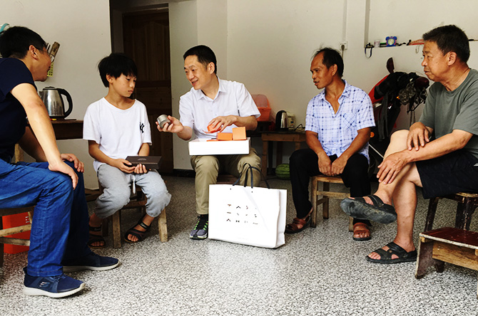 随后,肖湘愚来到自己的结对帮扶对象7组张祖旺家,为其送上了米、油等慰问物品,并详细询问和了解张祖旺家在脱贫中遇到的困难。他还给张祖旺的儿子张良相送上了一盒精致的文化用品,并鼓励努张良相努力学习,发狠读书,用知识改变生活。
