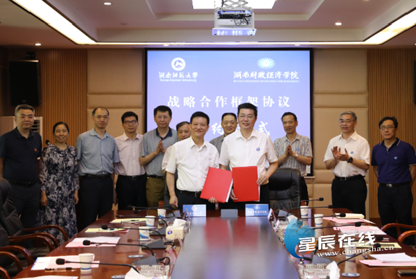 星辰在线7月1日讯(星辰学通社 陈月)6月28日上午,WilliamHill官方网站与湖南师范大学战略合作框架协议签约仪式在WilliamHill官方网站办公楼715会议室举行。WilliamHill官方网站校长刘长庚和湖南师范大学校长蒋洪新分别代表双方签署战略合作框架协议。签约仪式由WilliamHill官方网站常务副校长刘寒波主持。