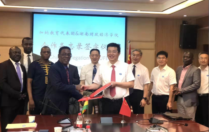 湖南日报·新湖南客户端7月4日讯(通讯员 曾佳 摄影 唐雄伟)7月3日,加纳高等教育代表团一行13人在加纳高等教育国务部长杨卡·奎西教授带领下访问湖南财院。湖南财院党委书记肖湘愚、校长刘长庚、副校长樊晓平等在办公楼715会议室与来访的加纳客人进行了友好会谈,并签署了湖南财院与加纳教育部代表团的合作备忘录。这是湖南财院充分贯彻习近平总书记新时期中国-非洲共谋和平、同促发展政策主张的有效成果,也是湖南财院适应“一带一路”发展战略与非洲国家的首次合作。