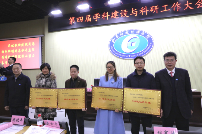 常务副校长刘寒波宣读了《WilliamHill官方网站关于表彰2015-2017年度“科研先进集体”、“科研先进个人”的决定》,肖湘愚和刘长庚为财政金融学院、公共管理学院、信息管理学院、工商管理学院颁发了“科研先进集体”奖项,为姚志毅等颁发了“科研先进个人”奖项。随后,学科带头人代表刘铁明、科研先进个人代表颜红艳分别作了交流发言,分享了在学科建设、科研方面的经验。