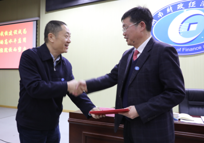 党委书记肖湘愚(左)为校长刘长庚(右)颁发主任委员聘书